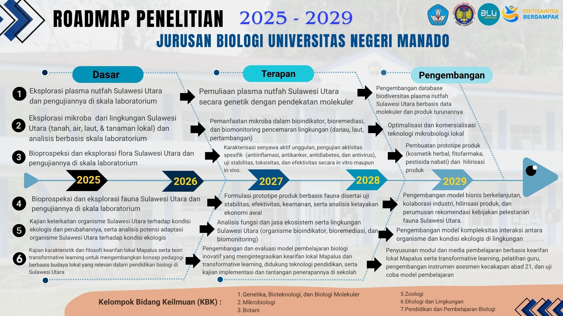 Roadmap ini juga memperhatikan keragaman kelompok bidang keilmuan (KBK) yang ada di jurusan, mulai dari bioteknologi, mikrobiologi, zoologi, hingga pendidikan biologi, serta menjadikan konteks lokal Sulawesi Utara sebagai sumber inspirasi utama penelitian.